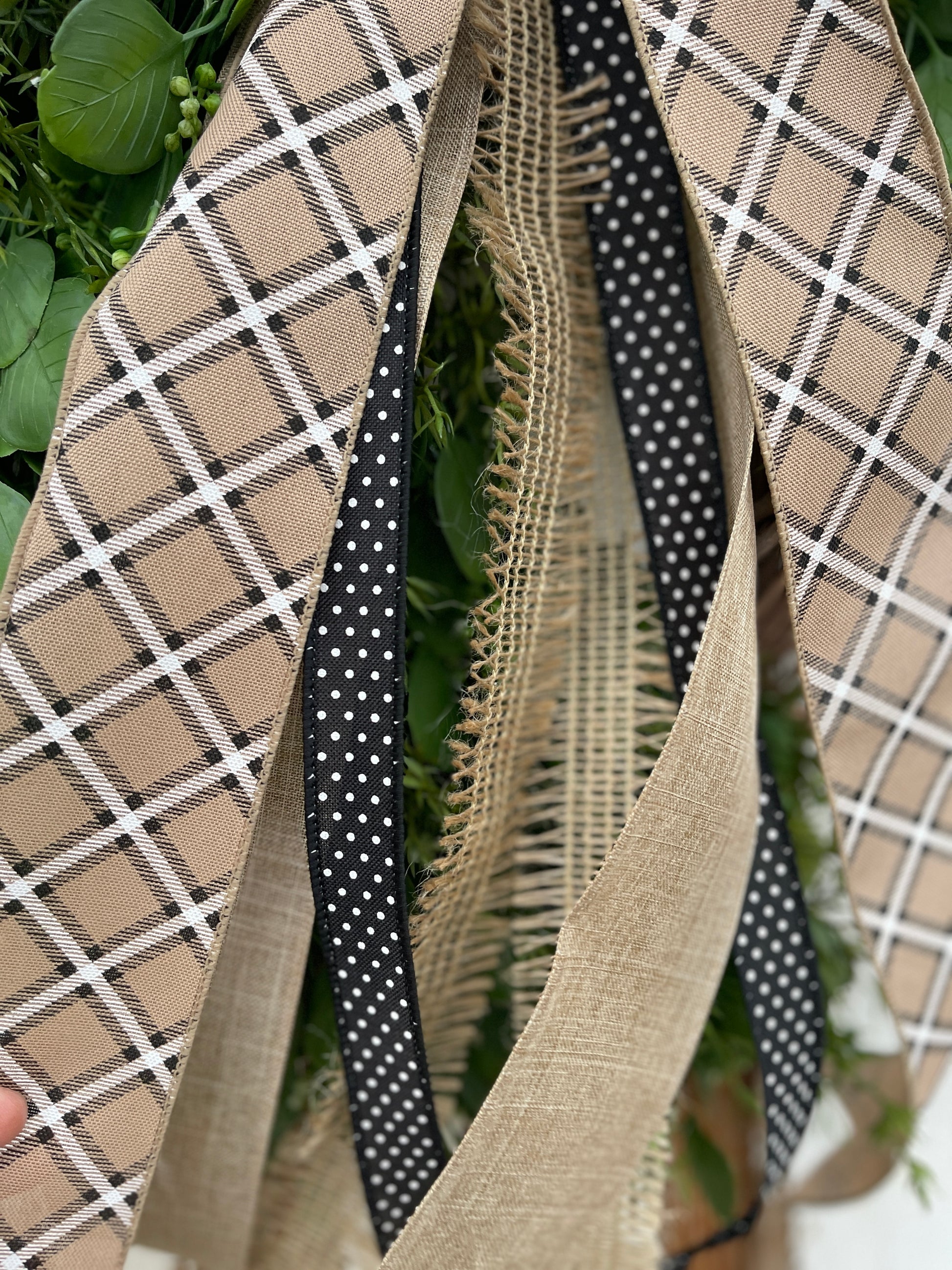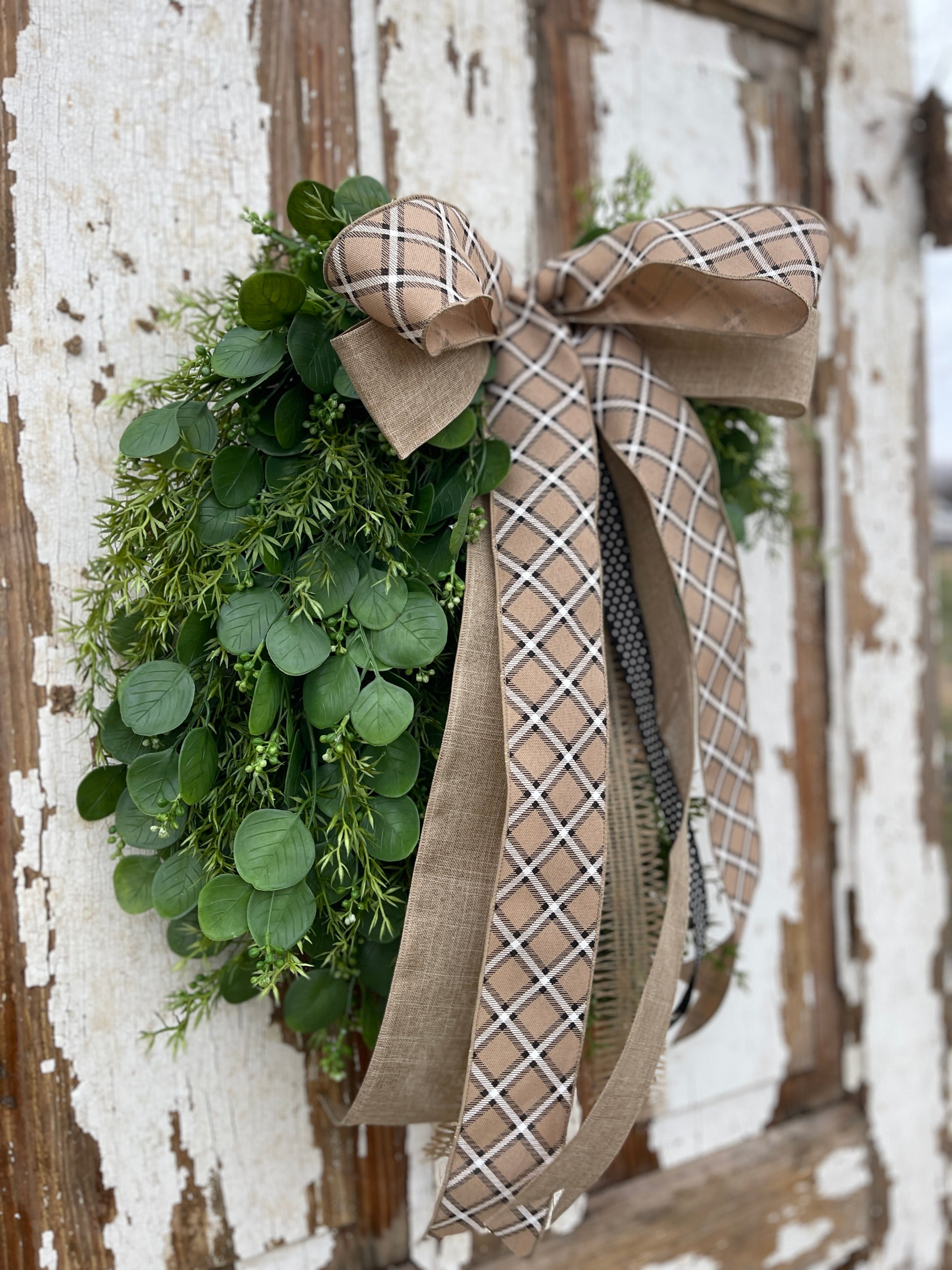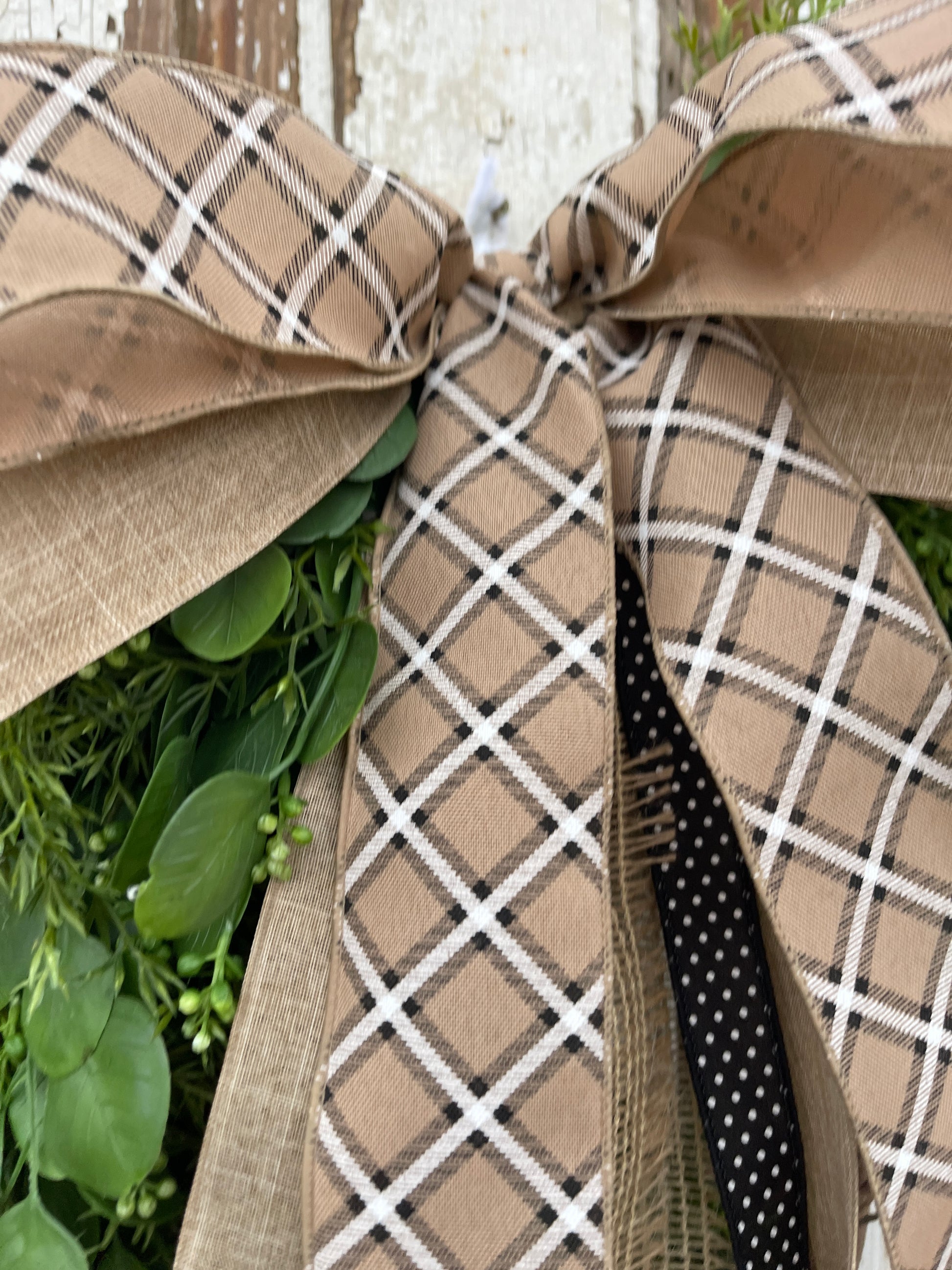 • Materials: High-quality artificial greenery, ribbon, and a sturdy grapevine frame.