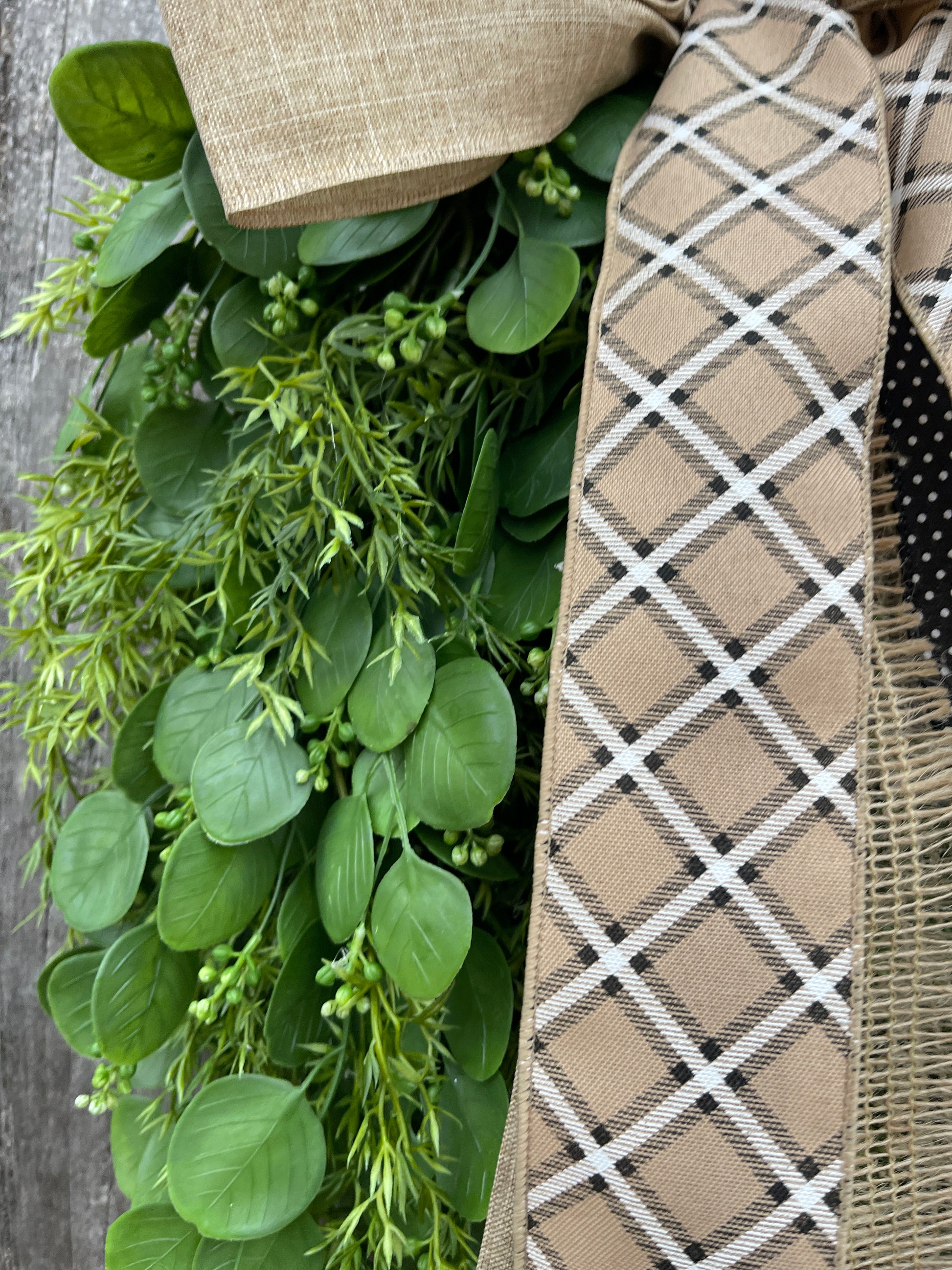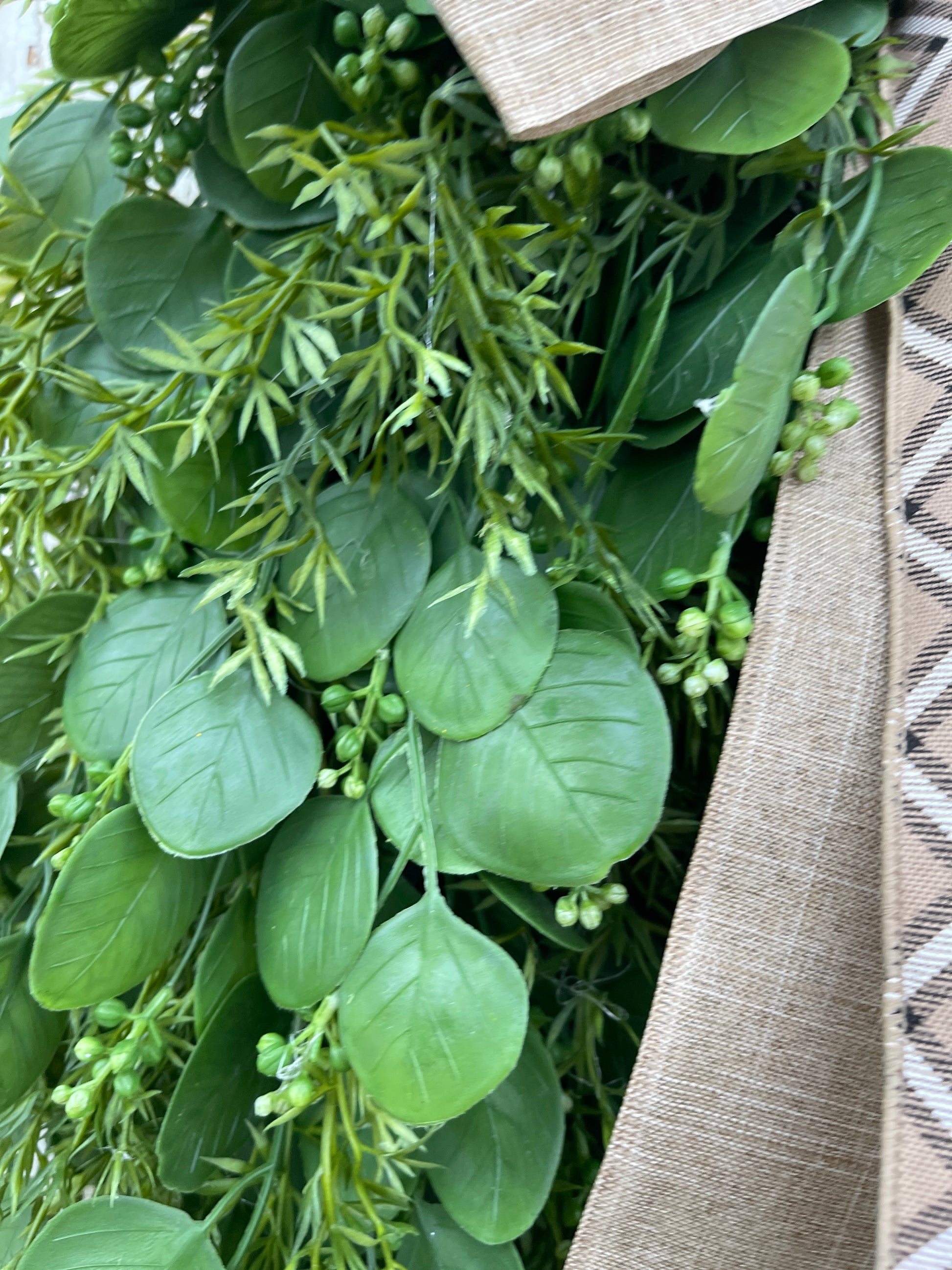 Bring a touch of nature’s beauty to your home with the Meadow Grace Wreath. This elegant spring design features a 14” grapevine frame adorned with lush greenery, delicate eucalyptus, and a soft plaid bow that adds rustic charm. Perfect for your front door or indoor decor, this wreath welcomes guests with its timeless simplicity and fresh aesthetic.