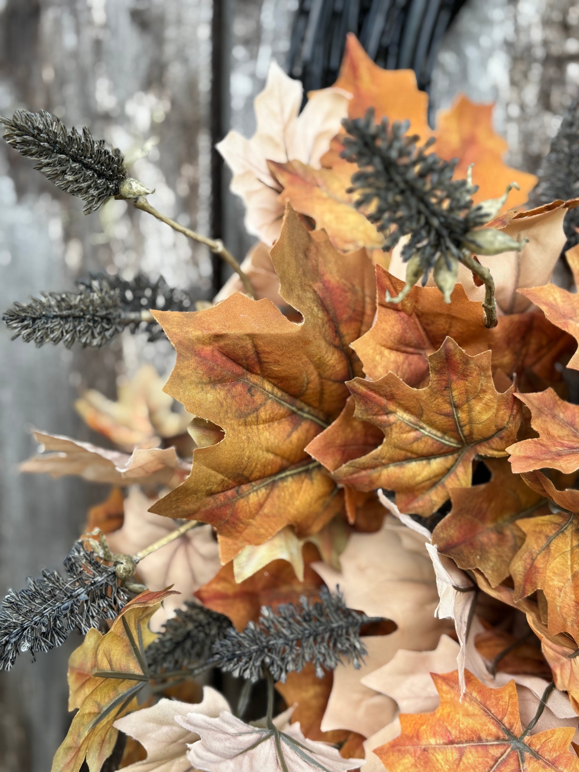 • Faux maple leaves in rich autumn tones