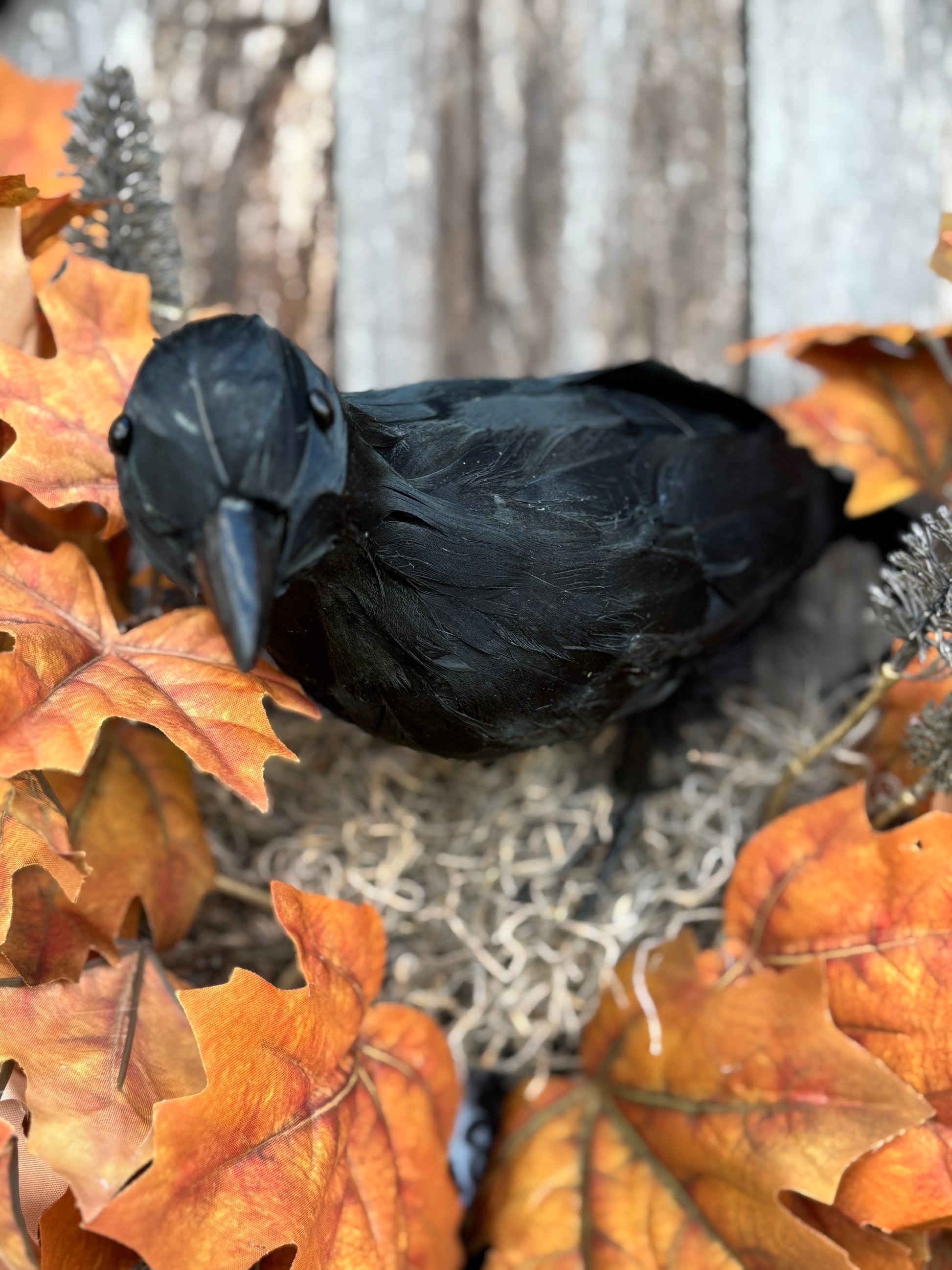 • Realistic black crow centerpiece