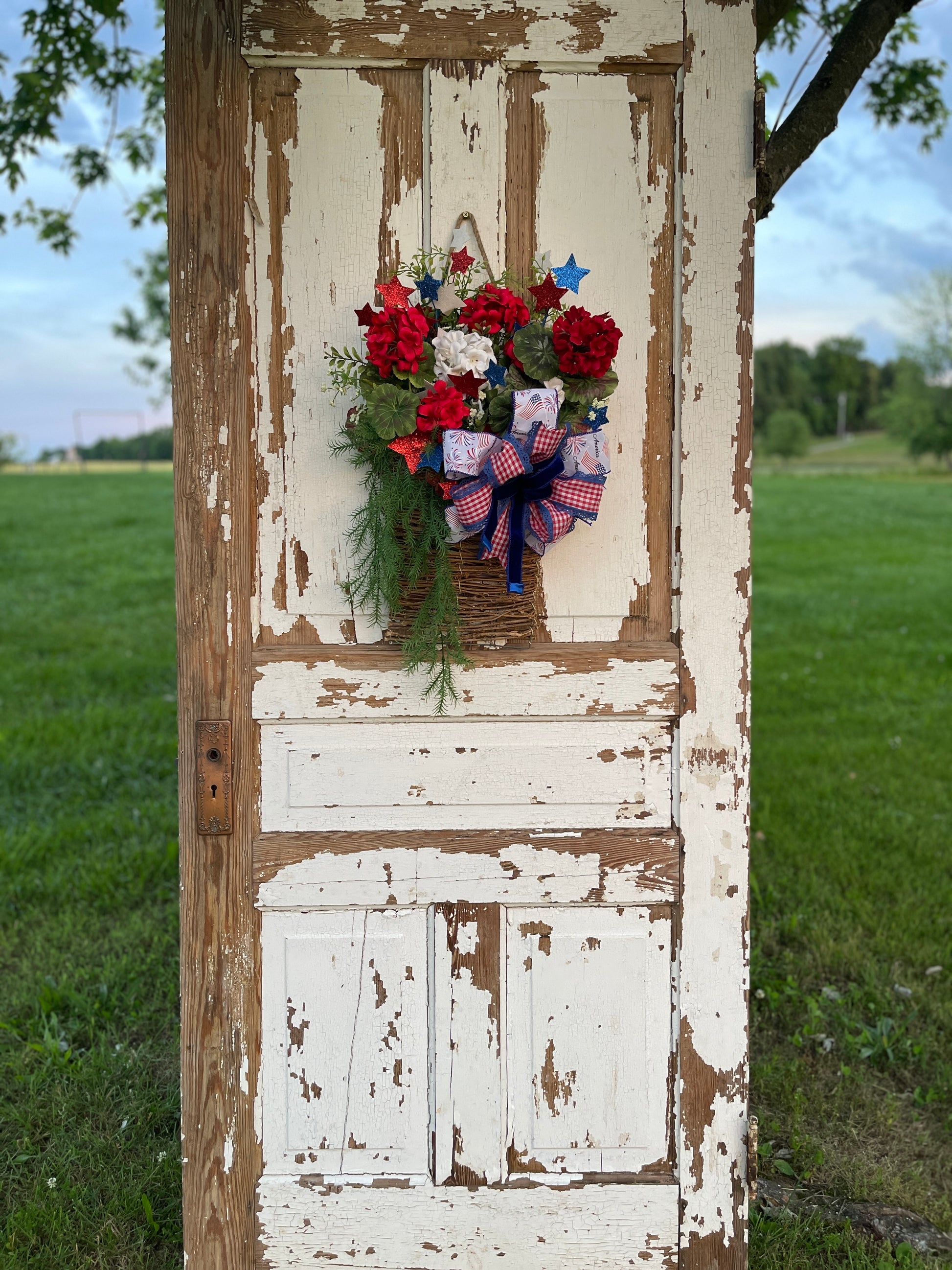 Bring a festive and patriotic spirit to your home with this stunning basket wreath. Order now and enjoy the charm and elegance it brings to your decor!